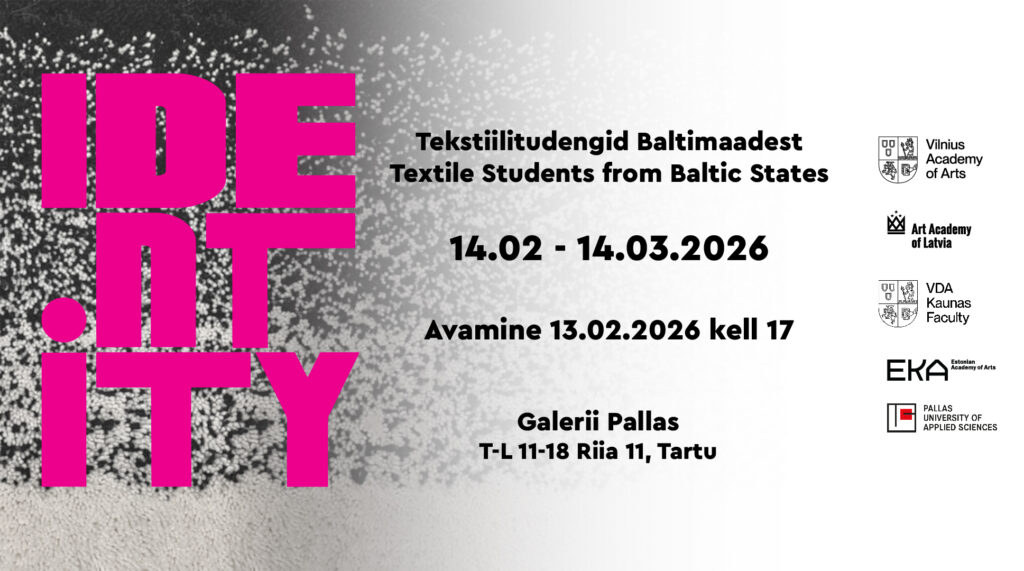 The aim of the exhibition IDENTITY is to bring together, in one shared space, the works of textile students from art academies in the Baltic countries. Higher art education institutions in neighbouring countries are closely connected through artist–educators, professional networks, and mutual collaboration, and the exhibition offers an opportunity to explore the creative work of students studying at different institutions.