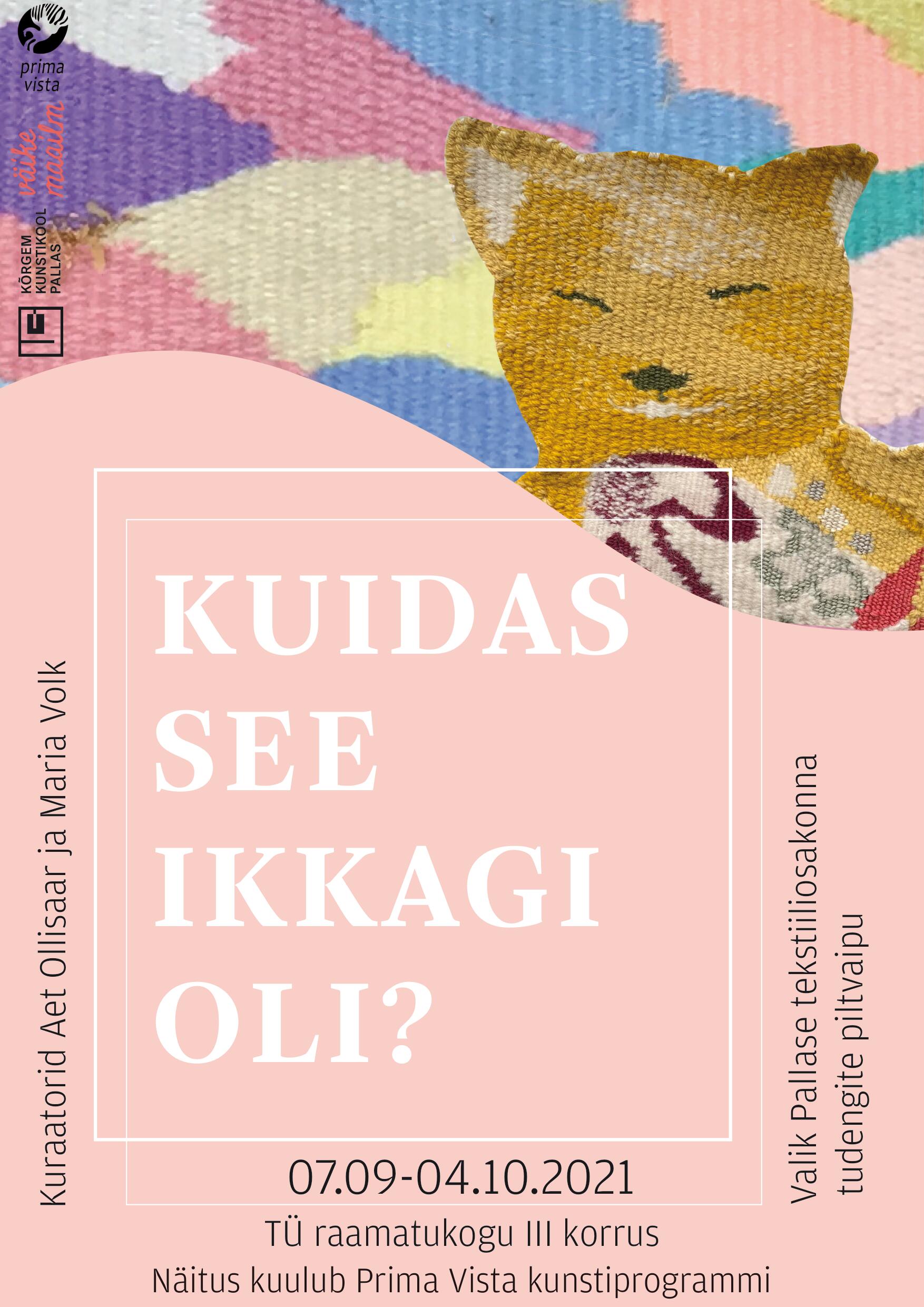 Pallase tekstiiliosakonna juhataja, professor Aet Ollisaare vaibanäitus „Kõik, mis oli ja on“ on Toompea lossi kunstisaalis avatud 14.05-19.06.2025