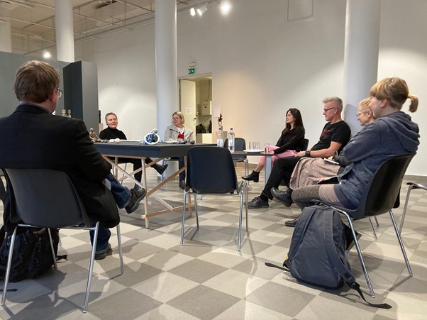 Kõnelejate poolelt osales Pallase skulptuuriosakonna professor Anne Rudanovski, skulptor Leena Kuutma, keraamik Tõnis Kriisa, skulptor Silja Truus ja näituse kuraator Heiti Kulmar. Arutelu modereeris maalikunstnik ja kunstianalüütik Kaire Nurk.