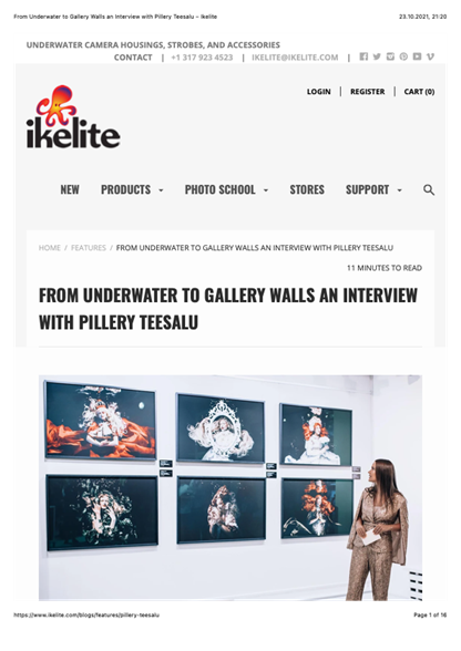 Taas on põhjust rääkida meie uuenduslikust suunast – allveefotograafiast. Äsja Aasta Õpetaja tiitlile väga lähedal seisnud Pillery Teesalu on nüüd oma töödega sattunud USA ajakirja Ikelite veergudele lausa ülipika intervjuuga. Vt. https://www.ikelite.com/blogs/features/pillery-teesalu