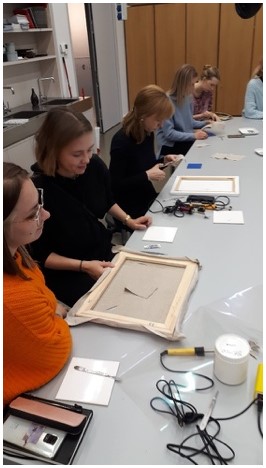 Teadusseminar „Materjalide maailm“, mis toimus 19.-20. oktoobril oli põnev ja hariv. Restaureerimissuuna tudengid võtsid seminarist ja töötubadest usinalt osa. Olles kindel, et seminari kajastavad põhjalikumalt naha- ja mööbliosakonna ülevaated, siis piirdun siinjuures vaid EKÜ, Kristjan Bachmani ja teiste asjaosaliste tänamise ja kiitmisega. Ainsa ääremärkusena tooksin välja seminaride ja õppekavade ajalise kattumise probleemistiku. Kuidas tudengid saaksid osaleda seminaridel ilma tundidest puudumiseta? Õnneks suutsime (siinkohal tänusõnad Pillele) reorganiseerida õppejõududega koostöös oma õppetegevust nii, et üliõpilased millestki ilma ei jääks.