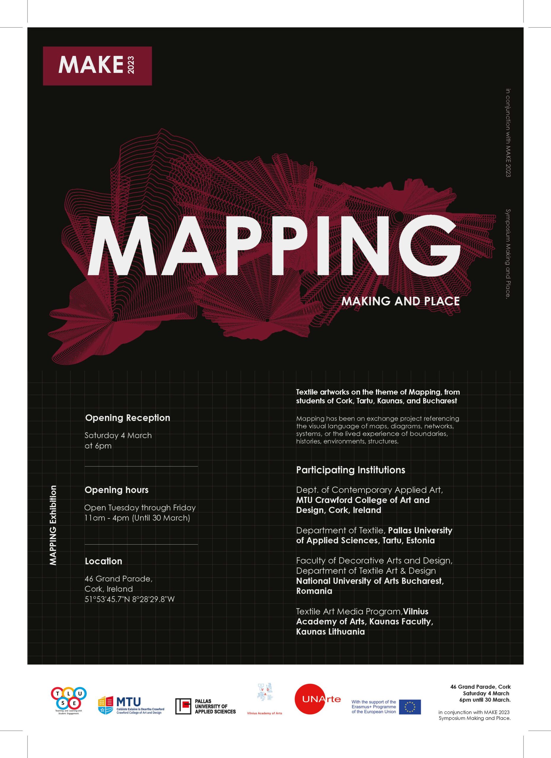 Käesoleva aasta näitus MAPPING on seotud Corki kunsti- ja disainikooli korraldatava rahvusvahelise sümpoosioniga MAKE2023, mille teemaks on seekord „Making and Place“. Näitusel osalevad neli kunsti- ja disainikõrgkooli: Pallas, MTU Crawford College of Art and Design (Iirimaa), Vilnius Academy of Arts, Kaunas Faculty (Leedu) ning National University of Arts Bucharest (Rumeenia). Näitus on juba leidnud äramärkimist ka Iirimaa kunstiajakirjas Irish Arts Review.