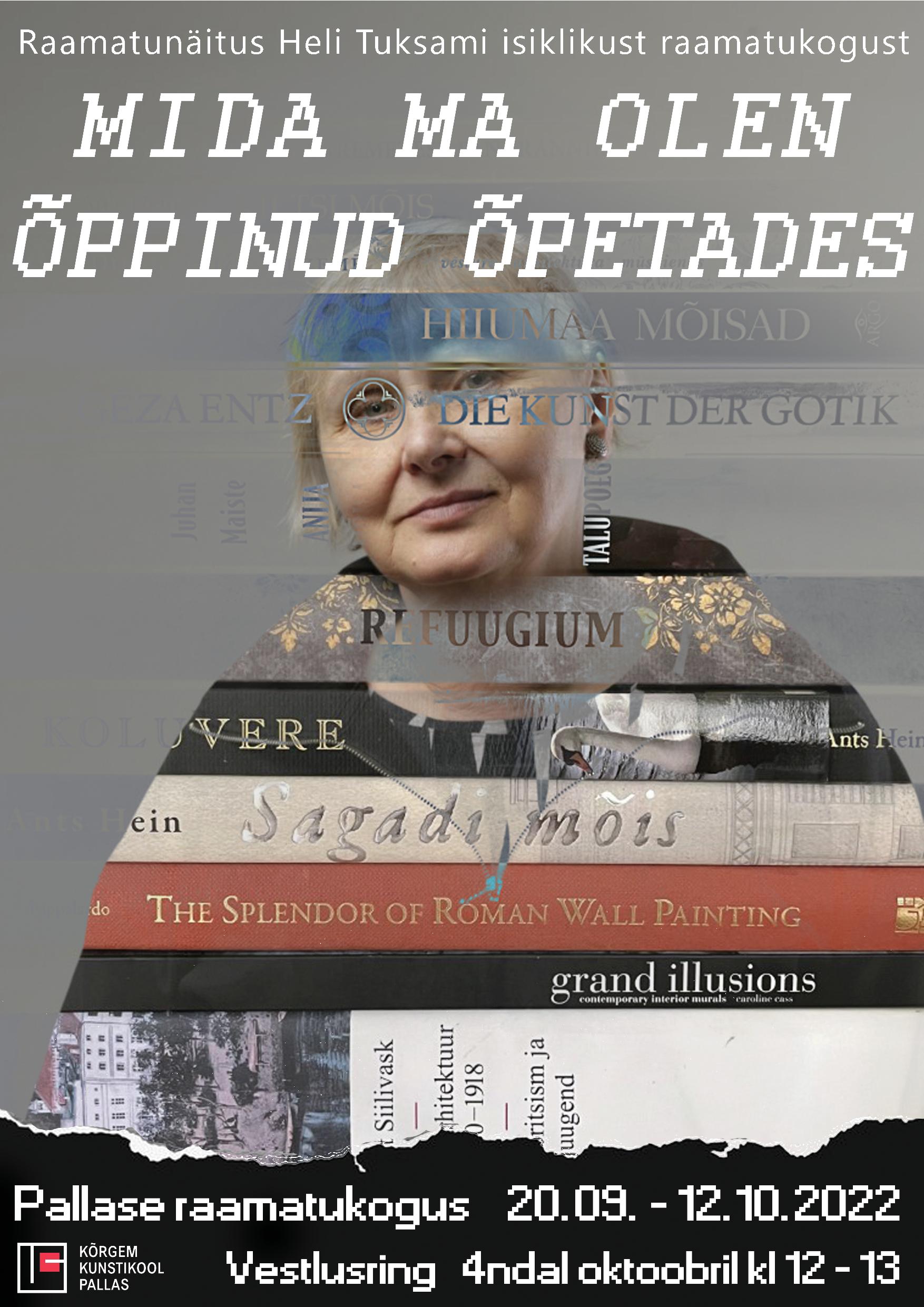 Pallase raamatukogus on 20. sept – 12. okt avatud näitus maaliosakonna professori Heli Tuksami isiklikust raamatukogust pärit olevatest teostest. Teisipäeval, 4. oktoobril kl 12 toimub raamatukogus temaga ka vestlusring.