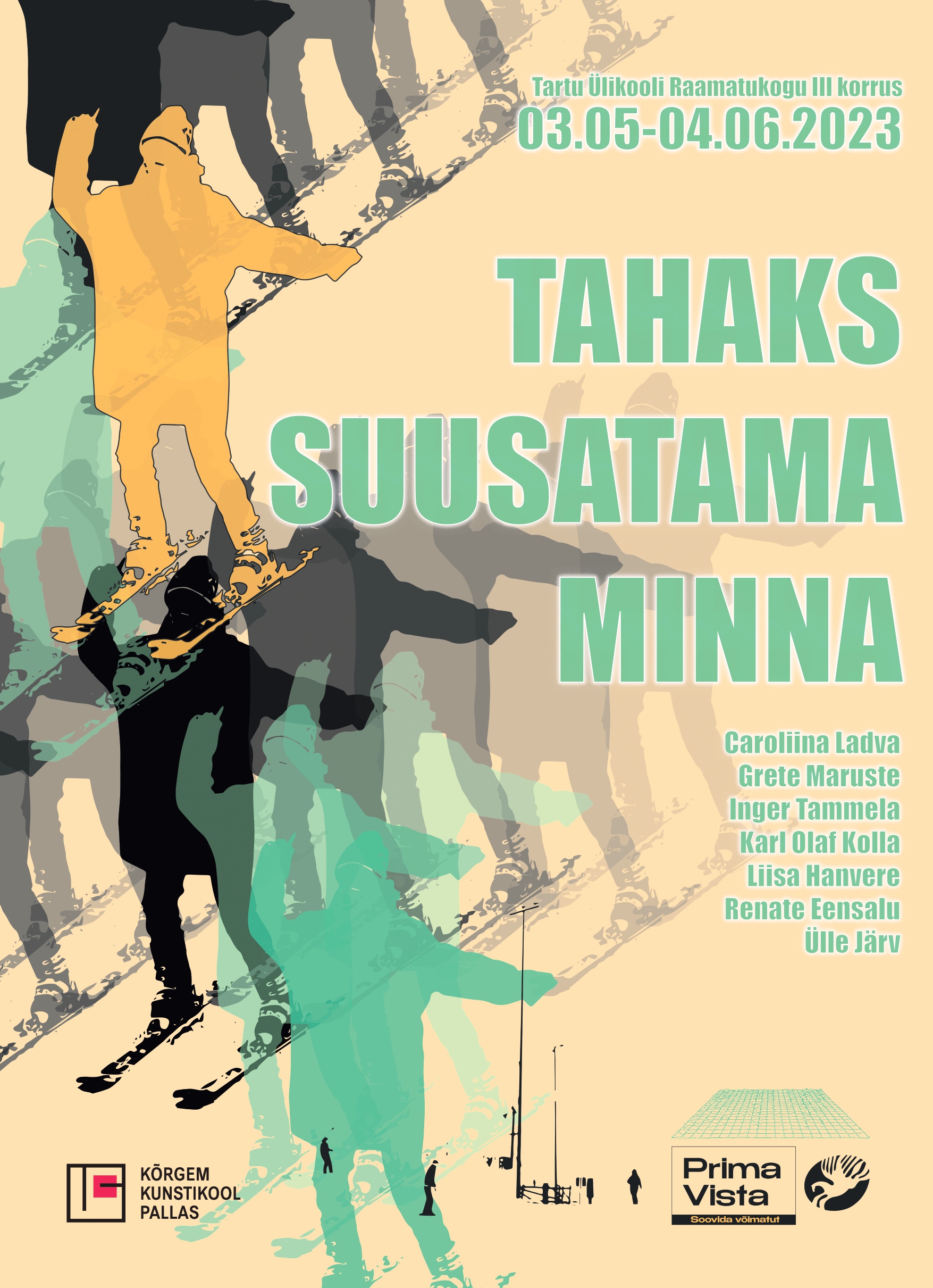Homme, 3. mail kl 12 avatakse Tartu Ülikooli raamatukogus Kõrgema Kunstikooli Pallas tekstiiliosakonna 3. kursuse tudengite gobeläänide näitus “Tahaks suusatama minna”, mis mõtiskleb selle üle, kus läheb piir võimalikkuse ja võimatuse vahel. Näitus kuulub Prima Vista 2023 kunstiprogrammi.