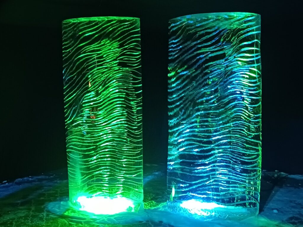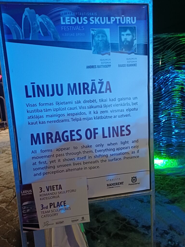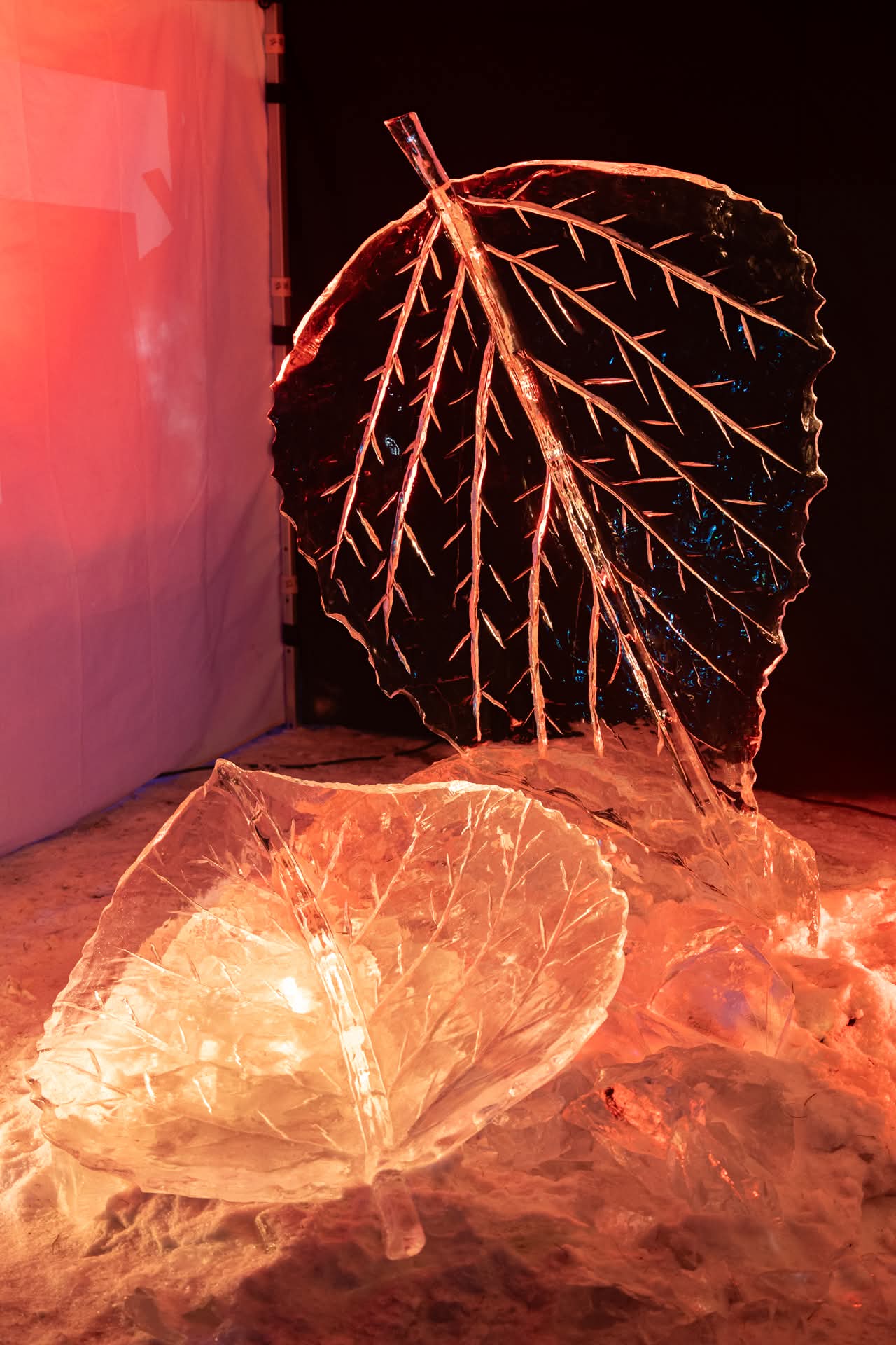 Andrese jääskulptuur kujutab kahte lehte ning on kummardus sügiskuudele, mis on nüüdseks kaugele selja taha jäänud. Raigo individuaaltöö „Rozmari“ keskendus valguse ja ruumi omavahelistele suhetele ning nende kontrastidele.